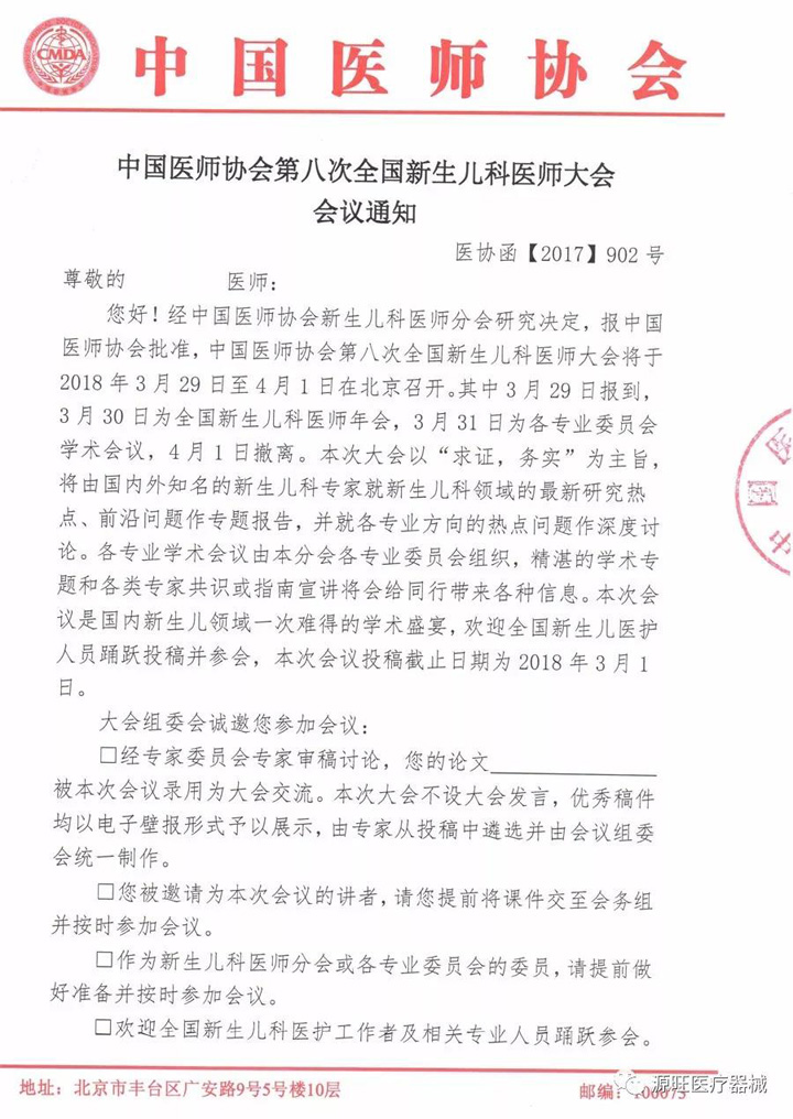全國第八屆全國新生兒科醫(yī)師大會會議,歡迎各位志同道合的合作伙伴及醫(yī)師們親臨展位指導(dǎo)工作!